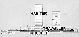 Le projet trouve ses fondements dans la charte d’Athènes (séparation des fonctions habiter, travailler, circuler) : il associe une structure horizontale (l’ouvrage dalle), conçue comme un belvédère sur la Seine, et une structuration verticale (les tours et les immeubles bas).